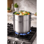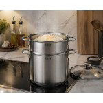 Sự kết hợp giữa một chiếc nồi sâu lòng (cao 19cm) và một xửng hấp (cao 7.5cm) mang lại sự linh hoạt tối đa: