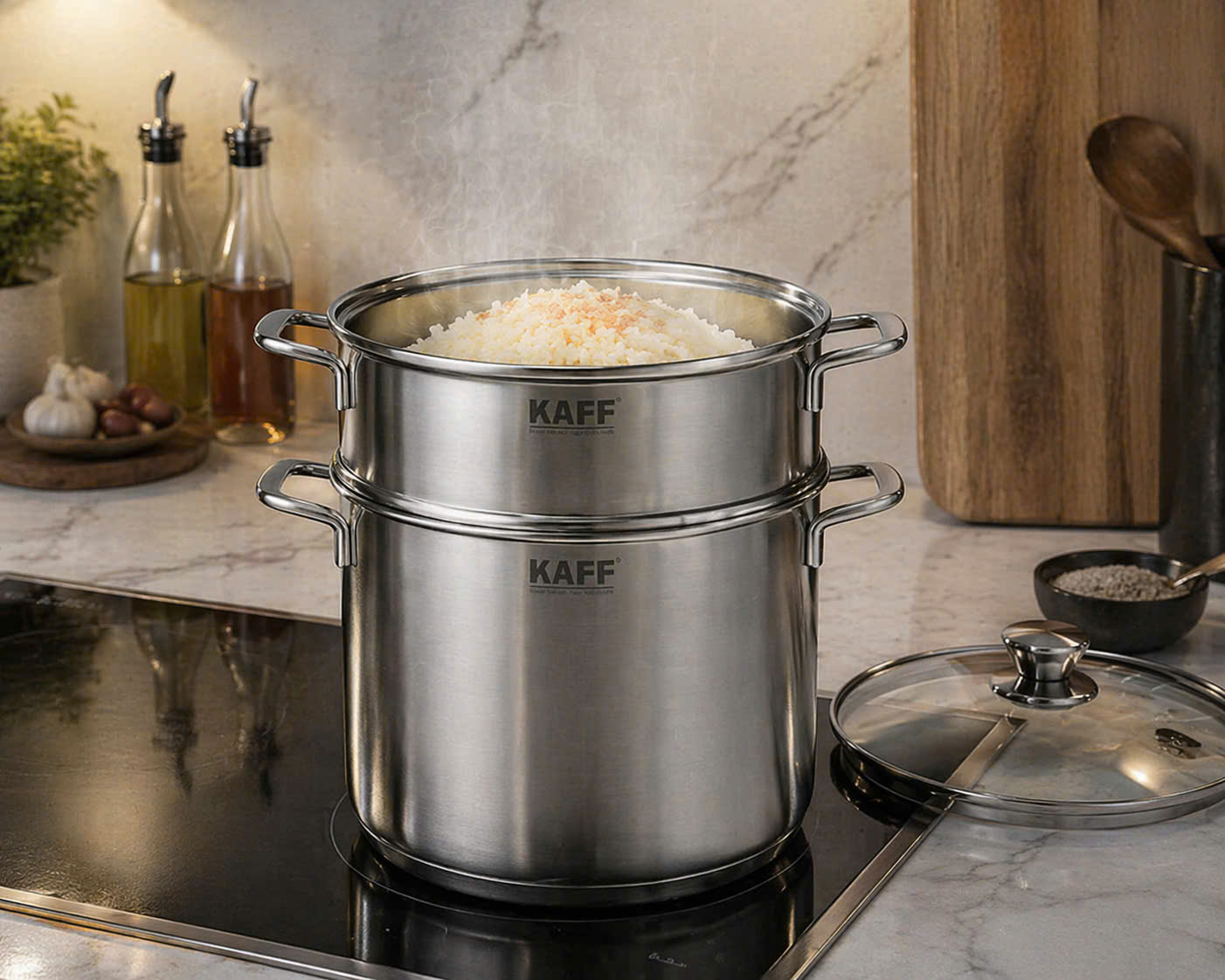 Món hấp luôn là lựa chọn hàng đầu để giữ trọn vẹn dưỡng chất và hương vị tự nhiên của thực phẩm. Với Bộ nồi xửng KAFF KF-ST24S, việc chuẩn bị những món bánh bao, hải sản hấp hay xôi dẻo thơm ngay tại nhà trở nên dễ dàng và chuyên nghiệp hơn bao giờ hết.