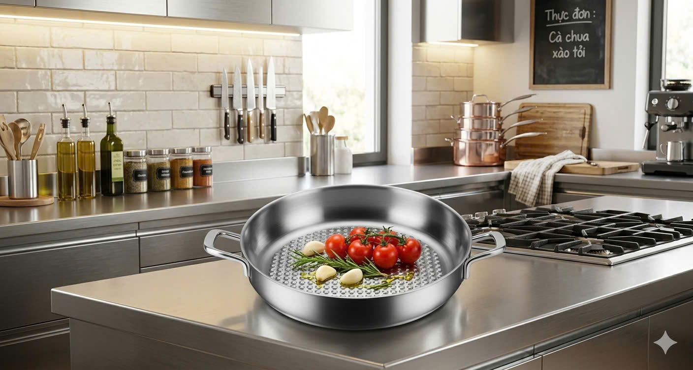 Được chế tác từ Inox 304 (SS304) cao cấp, sản phẩm không chỉ có vẻ ngoài sang trọng mà còn sở hữu khả năng chống ăn mòn cực tốt. Bạn hoàn toàn yên tâm nấu nướng ở nhiệt độ cao mà không lo thôi nhiễm các chất độc hại vào thực phẩm.