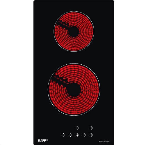 Bếp điện Kaff KF-330DC gồm 2 vùng nấu hồng ngoại với tổng công suất là 3000W. Vùng nấu hồng ngoại trên trang bị mâm nhiệt cao cấp Hi-light với 02 vòng nhiệt có công suất tối đa là 1200W. Vùng nấu hồng ngoại dưới trang bị mâm nhiệt cao cấp Hi-light với 02 vòng nhiệt có công suất tối đa là 1800W. Bếp hoạt động theo nguyên lí bức xạ nhiệt của tia hồng ngoại, đốt nóng mặt kính và truyền nhiệt qua đáy nồi và làm chín thức ăn bên trong. Nhờ nguyên lí hoạt động này nên bếp hoàn toàn không kén nồi, bạn có thể sử dụng tất cả các loại xoong nồi có sẵn trong gia đình.